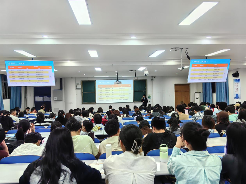 首先,南京正大天晴公司工作人员从关于我们、发展历程、人才培养、工作内容、招聘岗位、应聘流程等方面向同学们作了详细介绍。
