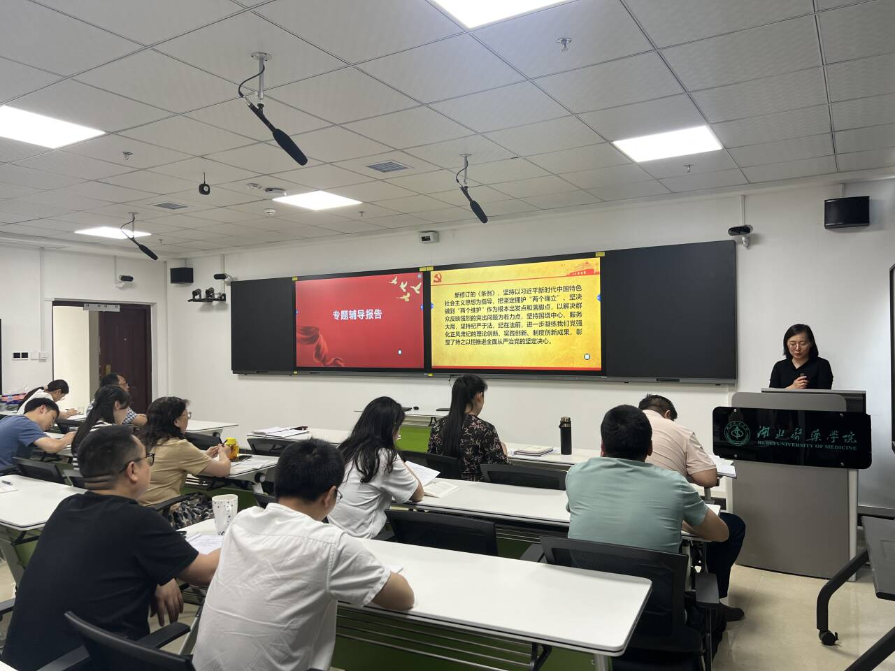 本网讯(通讯员黄晶晶)5月15日下午,,公司党纪学习教育专题读书班开班仪式在公卫大楼7楼多功能会议室举行,公司党委书记聂秀以“深入学习贯彻《中国共产党纪律处分条例》”为题讲授纪律党课。