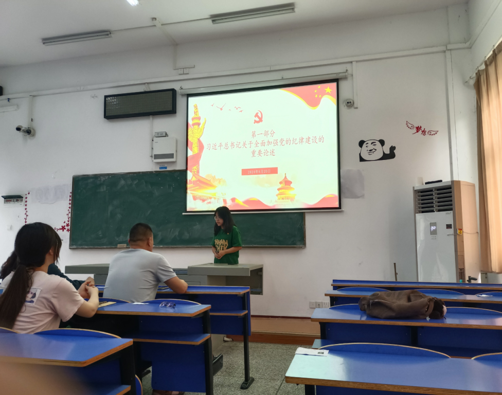 活动分为奏唱国歌、缴纳党费、重温誓词和集中学习四个部分,由石中玉老师带领全体党员领读誓词。在集中学习部分,由季金月同学同学带领大家学习习近平总书记关于全面加强党的纪律建设的重要论述;江行佳同学领学习近平在山东考察时关于进一步推动山东全面深化改革的讲话;李佳琪同学和张媛媛同学带领大家学习习近平总书记紧扣现代化主题,推动全面深化改革,为中国是现代化注入强劲动力的号召。最后,由江行佳、杜皓慧、李佳琪三名同学领读《中国共产党纪律处分条例》,在领学同学的带领下,全体党员更加深刻地认识到党的纪律的严肃性和重要性。