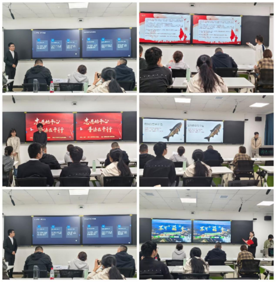七只参赛队伍依次汇报,充分展示了对自身课题的研究。星火团队围绕研究机制进行展开论述,结合所学所思凸显研究的科学性;美丽中国团队以五个建设为出发点,探讨了人民对“美丽中国”的理解与认识;典亮万家团队为加大全民普法力度赋能,积极推进“互联网+连动式”普法新模式;鱼你同在团队介绍了鳙鱼的营养价值以及推广副产品的前景;一元二次方程组团队撰写了老员工当前的就业形式与就业政策的调查报告;不可茹量团队探讨了提高资源利用率,构建循环利用体系;愈见初心团队提出了重视青少年心理健康的解决方案。参赛队伍的汇报体现了不俗的科学思维和创新精神,立论结合,具有一定的实操性。