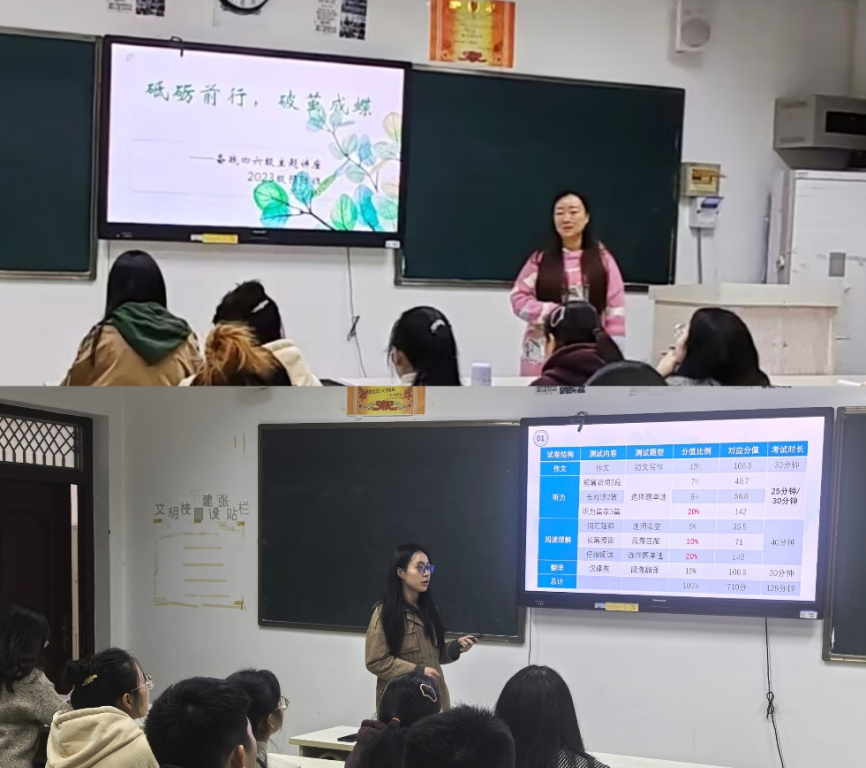 此次讲座鼓舞了班级同学的士气,拓展了备考思路,为四六级的最后冲刺提升了信心。(审稿人:吕红)
