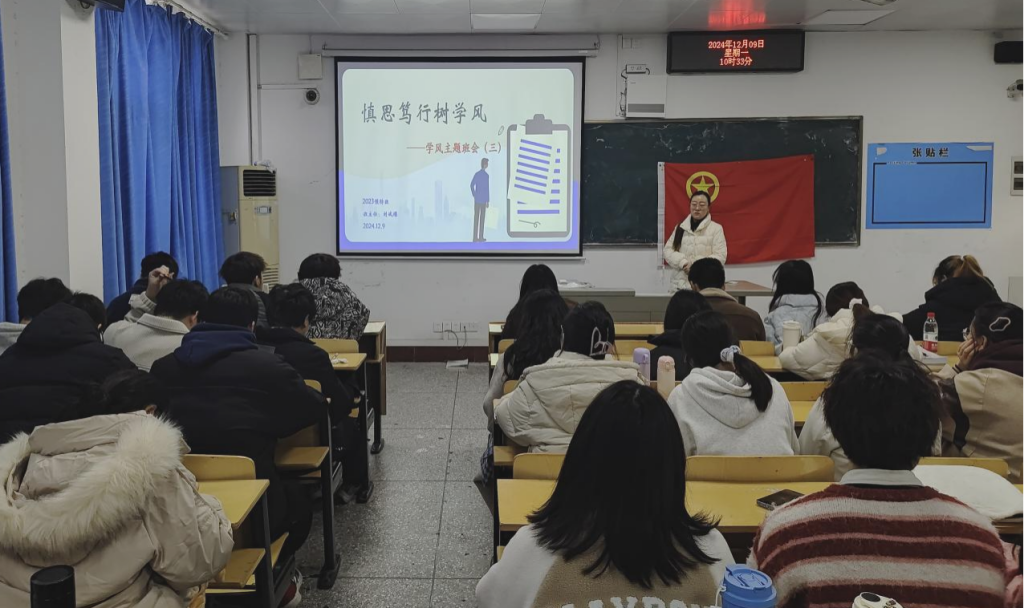 本网讯(通讯员 刘斌堰)12月9日上午,在5315教室举办了“慎思笃行树学风”主题班会,班主任刘斌堰老师主持,2023级预防班全体同学参加。