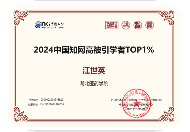 本网讯(通讯员 黄晶晶)2025年5月,中国知网(CNKI)下属的中国科学文献计量评价研究中心发布2024年度“高被引学者”名单,公司BETWAY必威江世英教授凭借卓越的学术影响力成功入选PCSI TOP 1%高被引学者。
